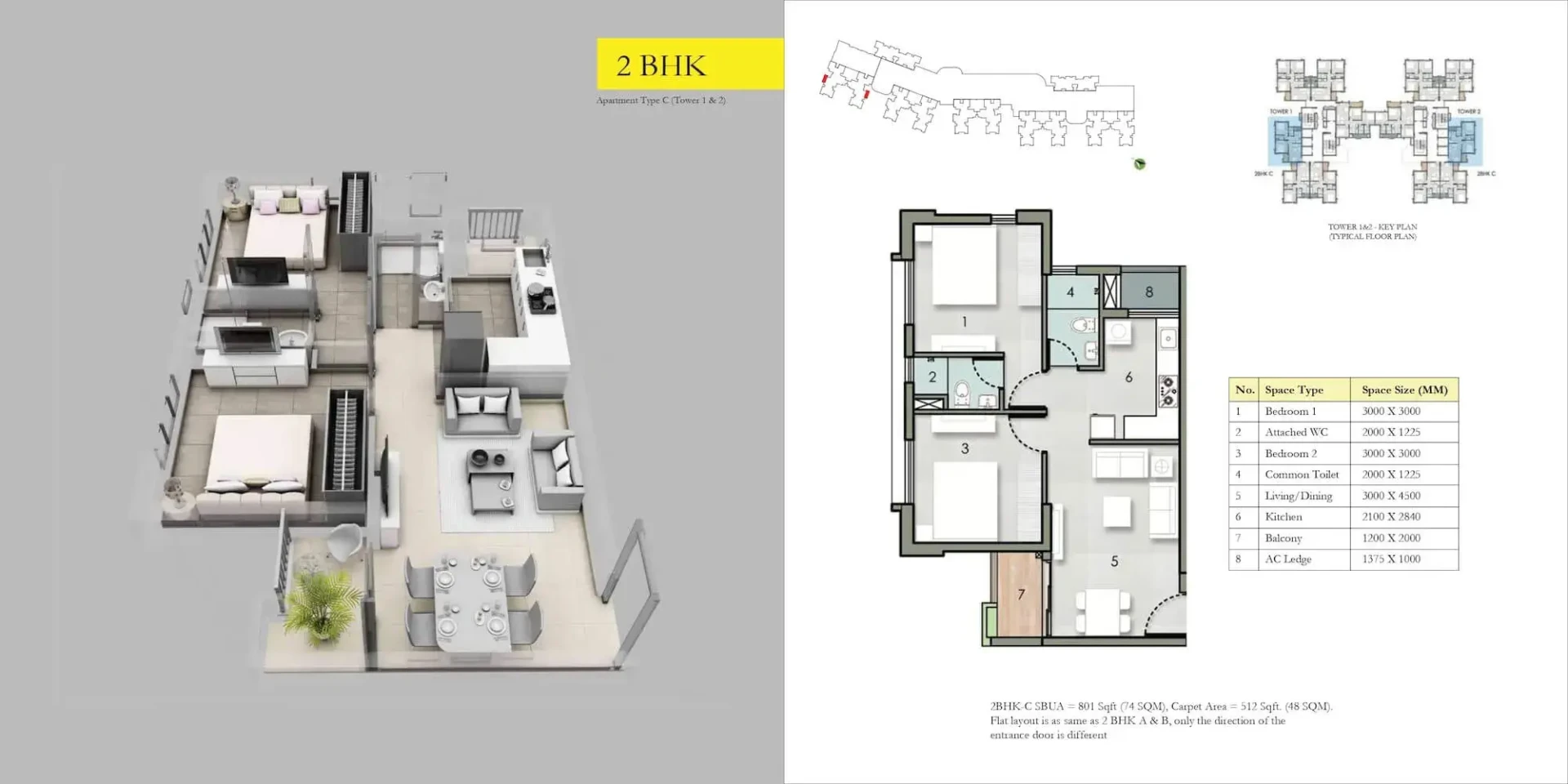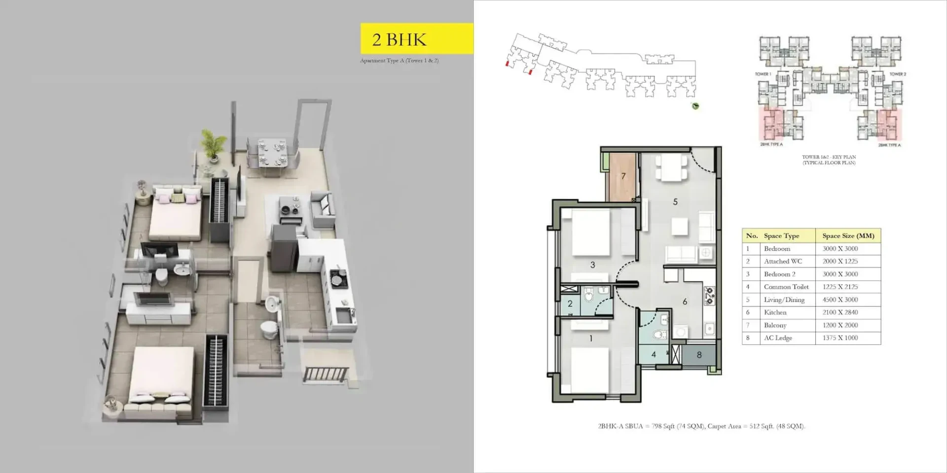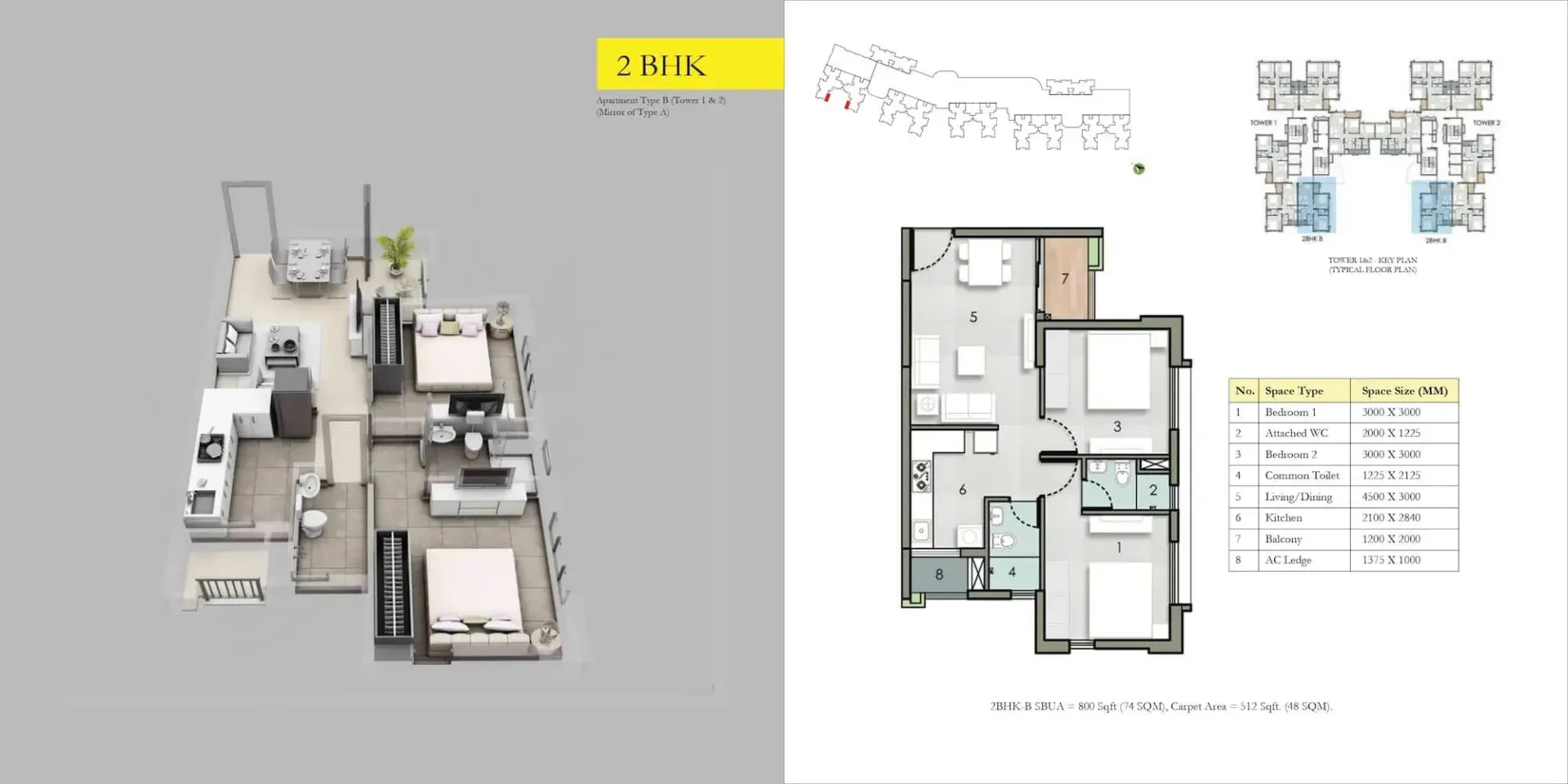 | 2 BHK | 800 sq ft | ₹ 22 L - 27 L |