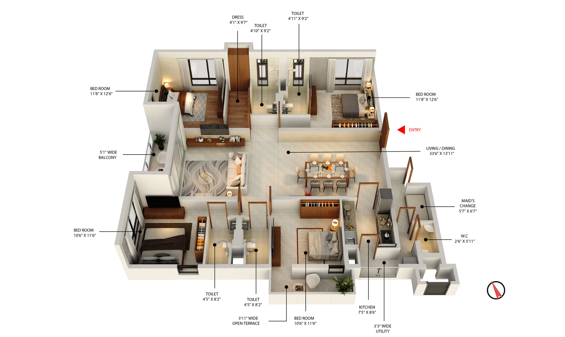| 3BHK+3T+SQ | 1975-2035sqft | 2.51 Cr Onwards |
