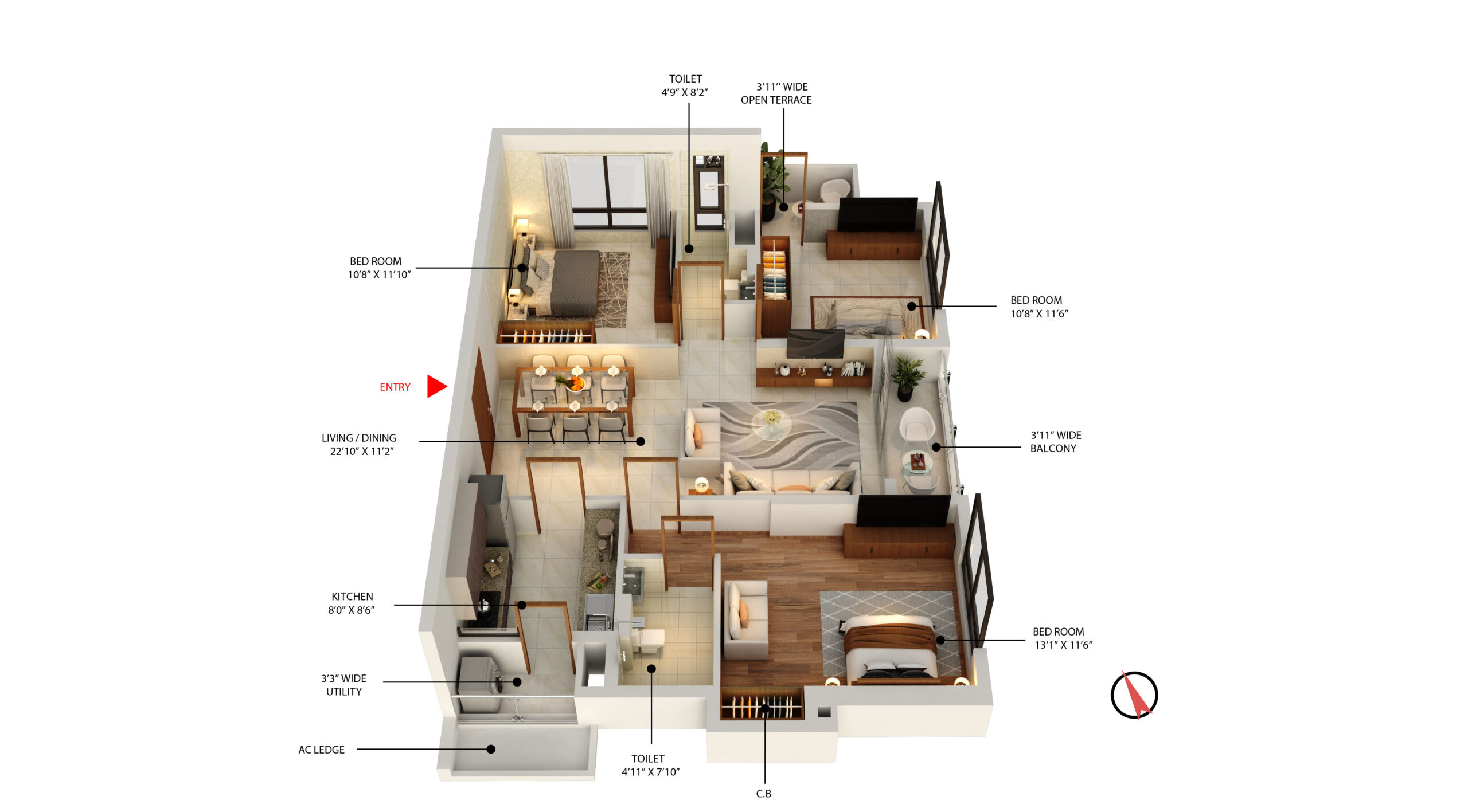 | 3BHK+2T | 1512-1531sqft | 1.85 Cr Onwards |
